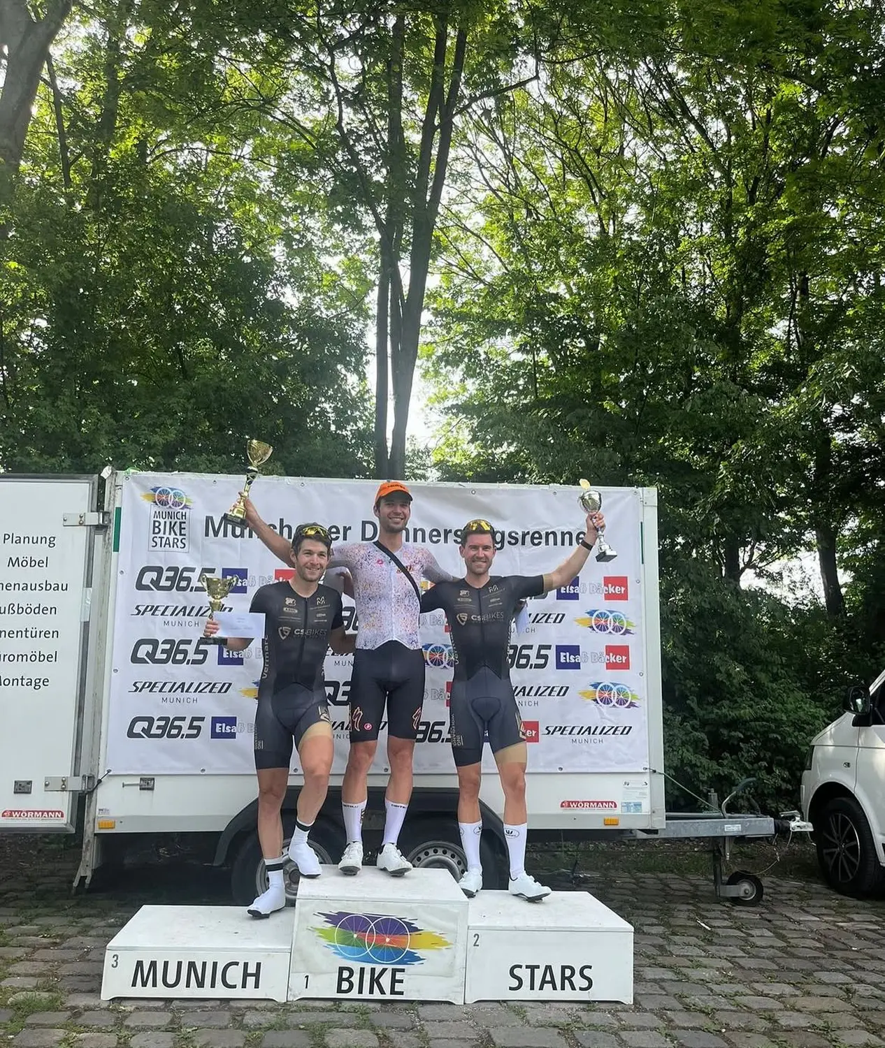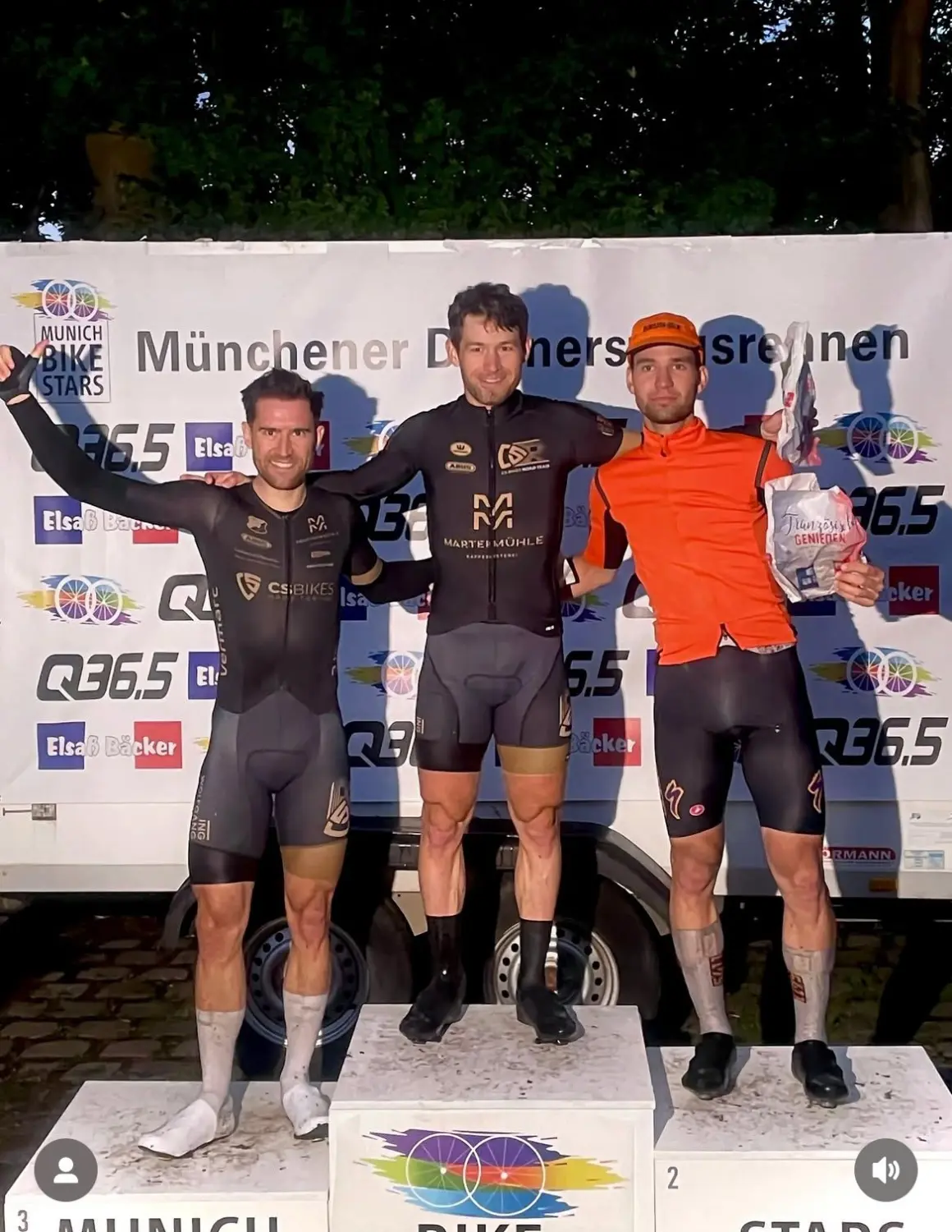 besetzten Feld des @munichbikestars Kriterium Finale! @florianwinnen finisht „sein erstes Senioren Rennen" ebenfalls auf dem dritten Platz